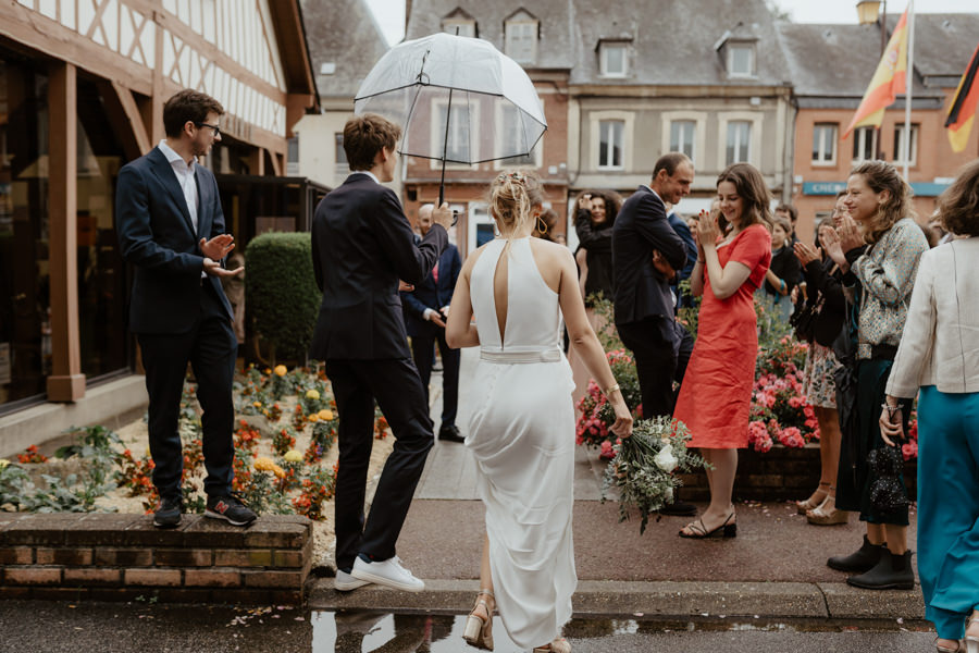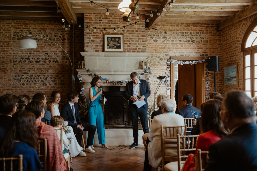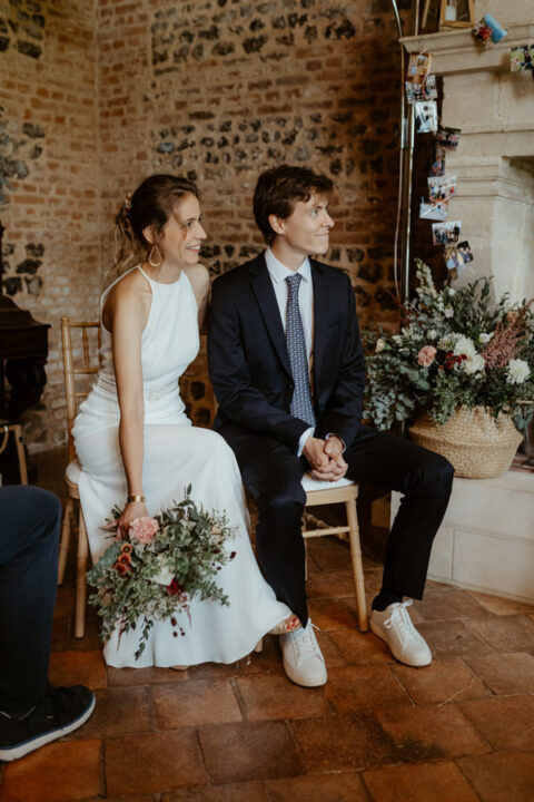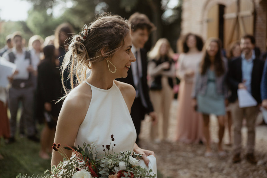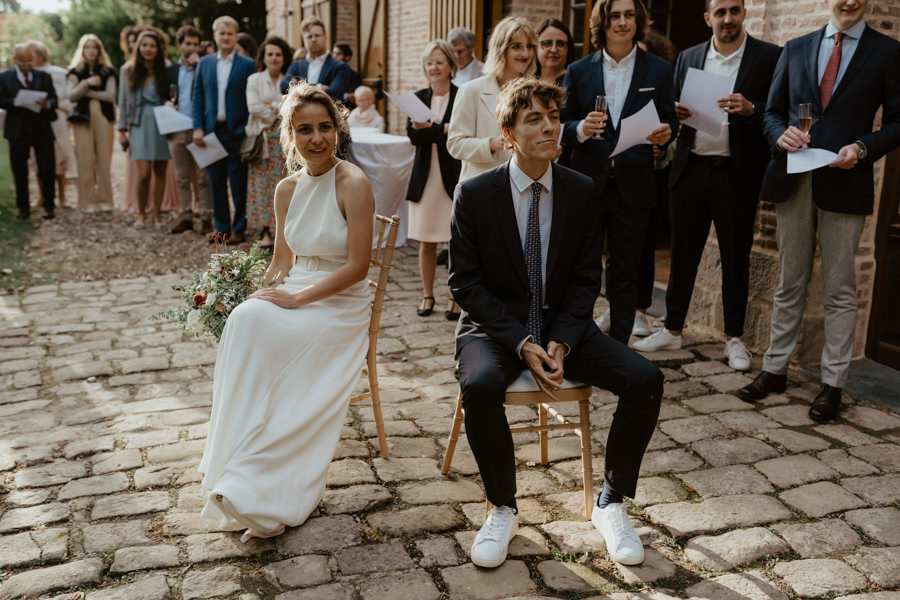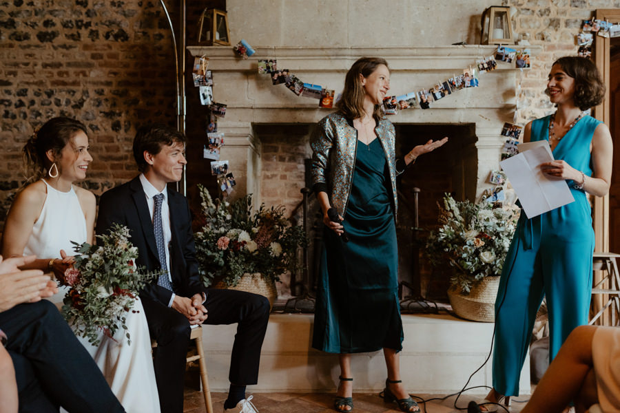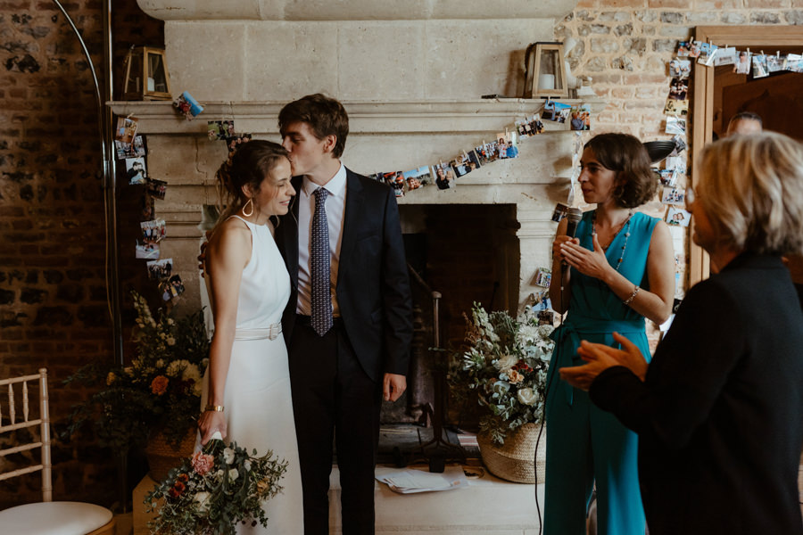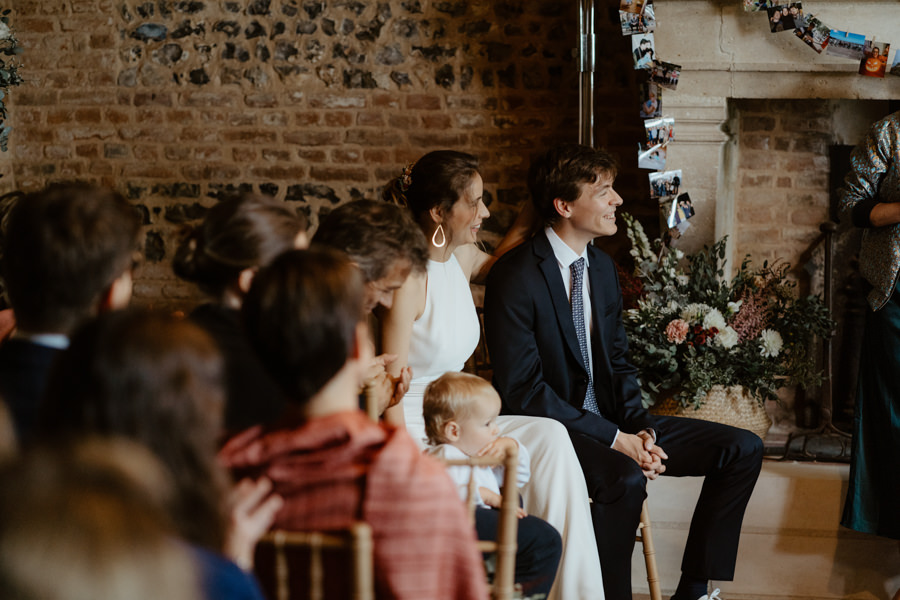 La météo aura chamboulé le programme qu'avait imaginé Camille & Tristan pour leur mariage, mais je dois avouer que l'ambiance était toute aussi jolie, et encore plus intime pour leur cérémonie laïque qui a eu lieu dans une petite grange. Nous avons ensuite été à la mairie, sous la pluie.