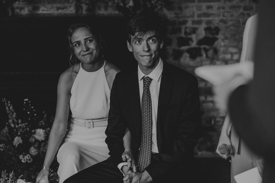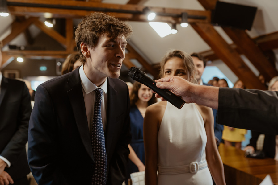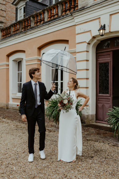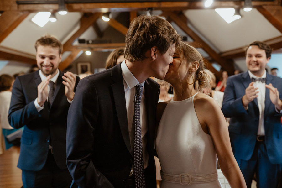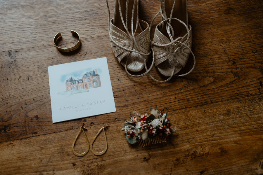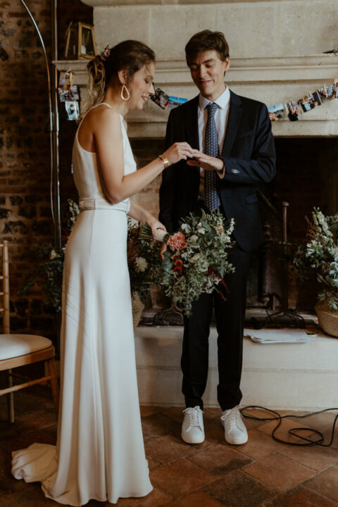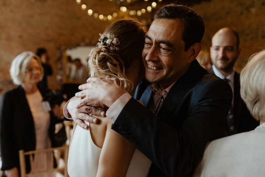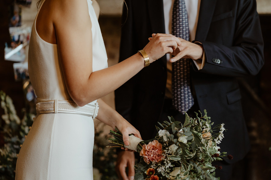 La météo aura chamboulé le programme qu'avait imaginé Camille & Tristan pour leur mariage, mais je dois avouer que l'ambiance était toute aussi jolie, et encore plus intime pour leur cérémonie laïque qui a eu lieu dans une petite grange. Nous avons ensuite été à la mairie, sous la pluie.