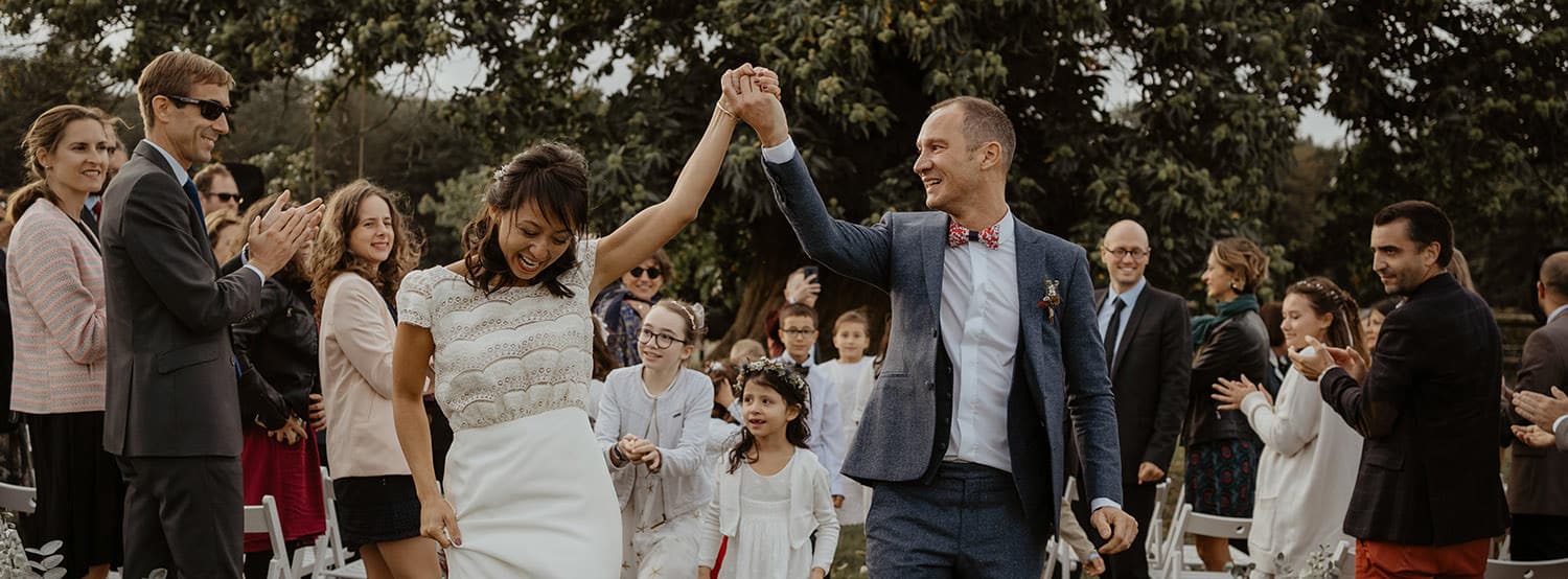 Bich & Arnaud se sont mariés par une belle journée d’automne au Pré des Colombiers en Normandie, même s’il ne faisait pas bien chaud nous avons pu assister à une belle cérémonie laïque sous le vieux chêne du domaine. Les invités ont été accueillis par un goûter et quelques jeux en bois, le tout dans la bonne humeur ! Nous avons ensuite poursuivi par un cocktail sur la magnifique terrasse du domaine et une soirée de folie sous une magnifique tente nomade décorée avec soin par Pauline et son équipe.